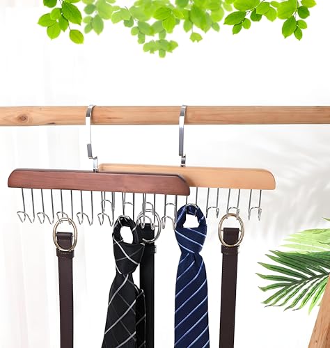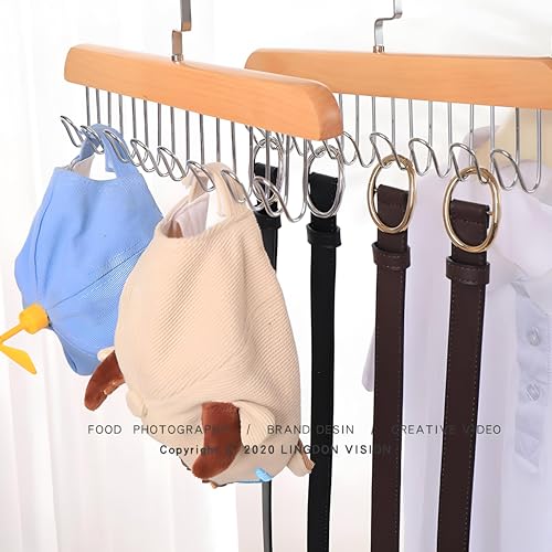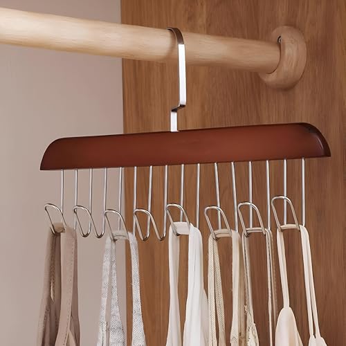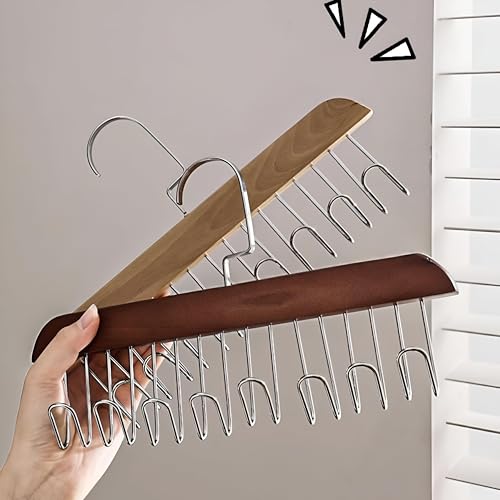 Generic - Space-Saving Rack - Wooden Hanger with Eight Metal Hooks for Efficiently Displaying Scarves, Ties, Belts, and Other Accessories in Your Closet (1)