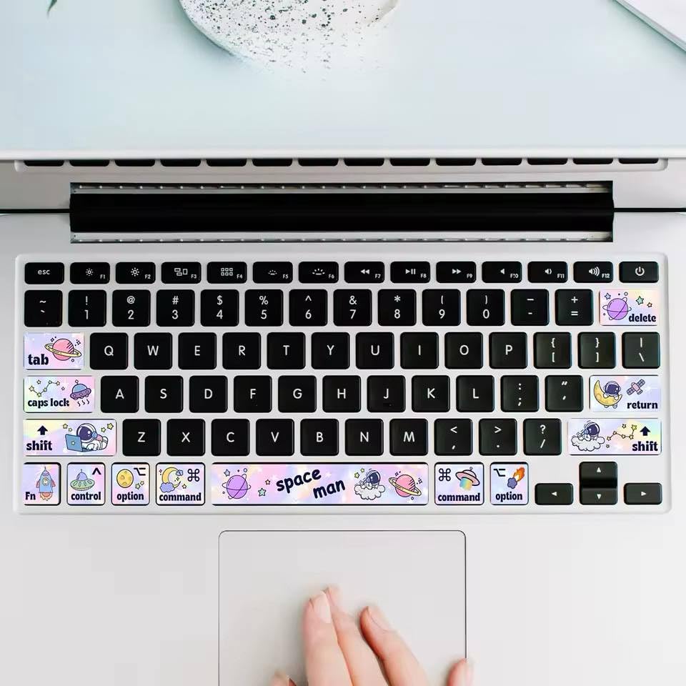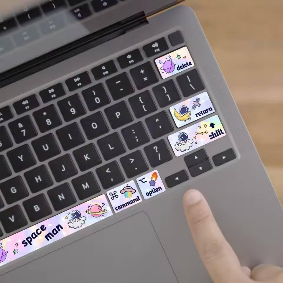 - رسومات لطيفة للفضاء ورواد الفضاء لمنح لوحة المفاتيح مظهرًا مميزًا، وهي ملصقات زينة مصممة للاستخدام اليومي. تمتاز بسهولة اللصق والإزالة دون إلحاق أي ضرر بسطح لوحة المفاتيح، كما أنها لا تؤثر على سرعة الكتابة أو استجابة المفاتيح. تتوافق مع أجهزة اللاب توب ماك بوك مقاس 13 بوصة، وتعد خيارًا رائعًا للطلاب والمبدعين ومحبي الفضاء.