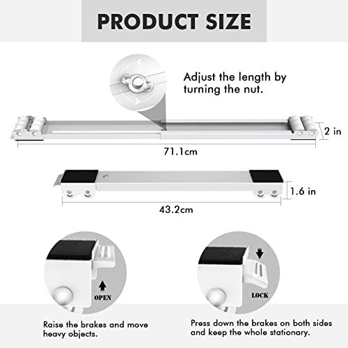 - Easy to assemble: the washing machine stand requires no complex installation. Just place the brackets under the corners of household appliances and furniture to move them, and then step on the brakes to secure them.