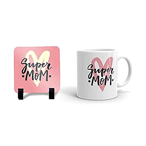 Generic - SPADE-Printing Mother's Day Mug with Coaster - Super Mom - Spade Pattern - Porcelain - 1 Piece