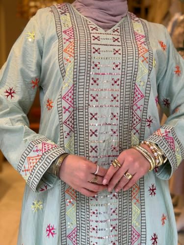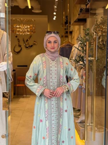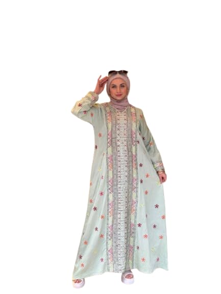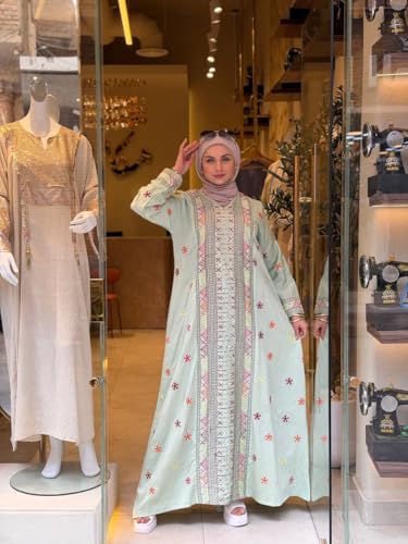 Generic - Spanish Linen Abaya Embroidery for Women Outdoor - Luxury Spanish Linen Material Elegant Embroidery Two Sizes (1 60-85 kg/Size 2 from 85 to 100 kg)
