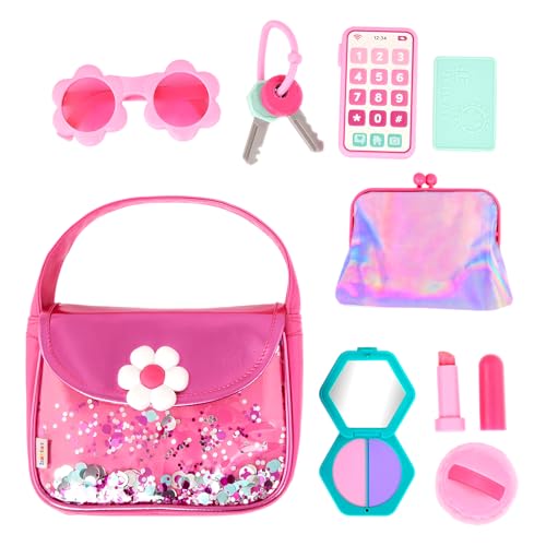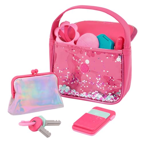 • مجموعة كاملة: تأتي شنطة اليد الوردية اللامعة مع ملحقات لعب بما في ذلك موبايل الألعاب ومحفظة العملات المعدنية المجسمة والنظارات الشمسية ومكياج اللعب والمفاتيح والمزيد من أجل متعة لعب تظاهرية لا نهاية لها.