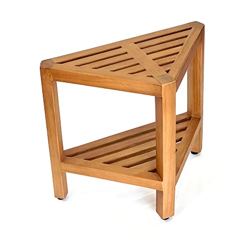 SPATEAK - Asta Bora Solid Teak Indoor Outdoor Shower/Bath/Spa Corner Stool with Shelf, Fully Assembled, Collection, TB-009