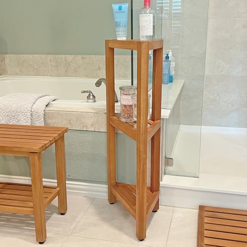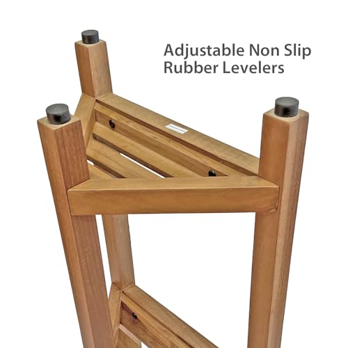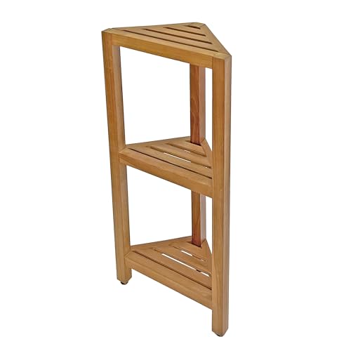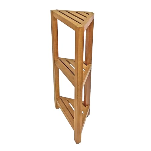 SPATEAK - Asta Select Solid Teak Freestanding Corner Shelf, 3-Tier Bath Corner Stand, Multifunctional Storage Rack for Bathroom, Kitchen, Living Room, Bedroom, Entryway and Indoor/Outdoor, RB-143