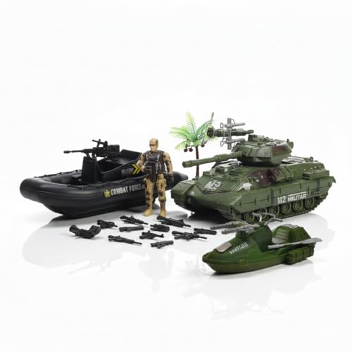 - All-in-one military toy set: includes Commando Commander figures with assorted military vehicles including tanks, military cars, ships and helicopters for a realistic and fun play experience