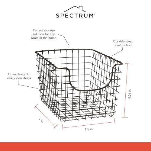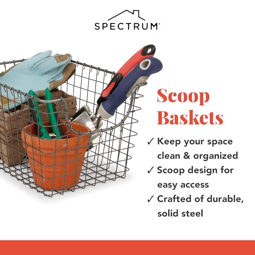 Spectrum - Spectrum Diversified Scoop Wire Basket, Vintage-Inspired Steel Storage Solution for Kitchen, Pantry, Closet, Bathroom, Craft Room & Garage, Small, Industrial Gray