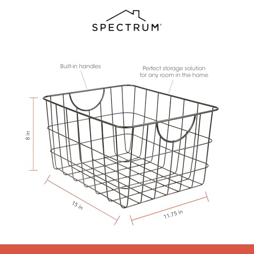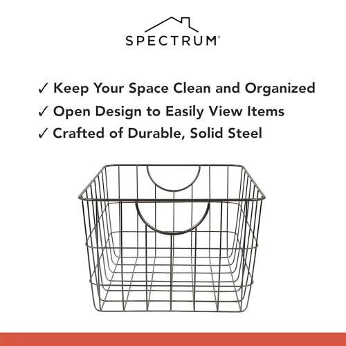 Spectrum - Spectrum Diversified Utility Wire Baskets for Organizing - Sturdy Steel Metal Basket Storage Organizer Bin with Handle - Open Wire Storage Baskets for Kitchen Pantry, Cabinets, Closet & Garage Shelves