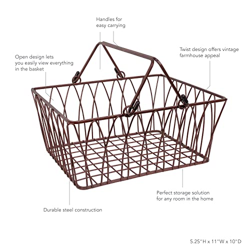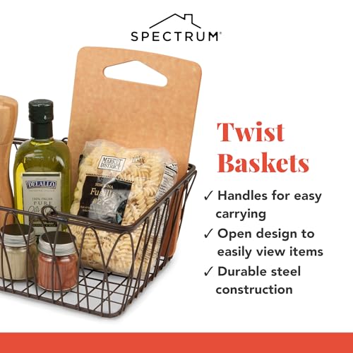 Spectrum - Spectrum Twist Wire Basket for Organizing (Medium, Bronze) - Sturdy Farmhouse Pantry Basket Storage with Handles - Wire Storage Basket Organizer for Kitchen, Shelf, Closet, Bathroom & More