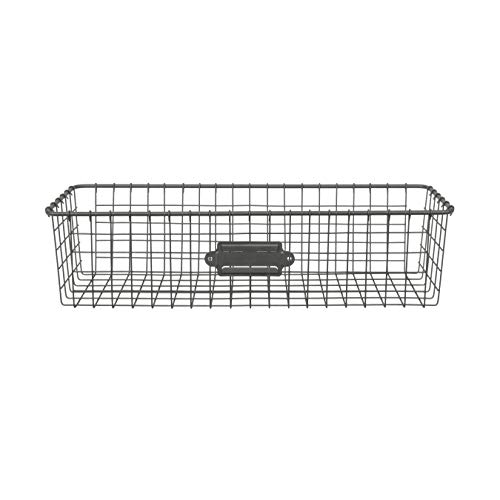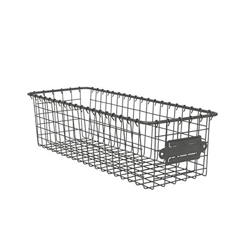 - DIMENSIONS & CARE: 4” H x 5.5” W x 16” D. Vintage Living Storage Basket comes with a movable faceplate to hold labels. Made from durable steel construction. Tray is not dishwasher safe. Instead, wipe clean with damp cloth and dry with towel.