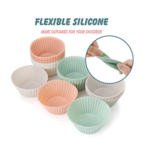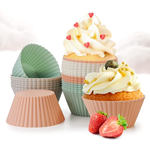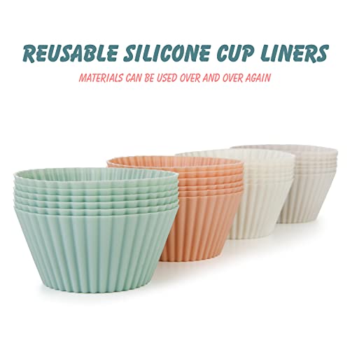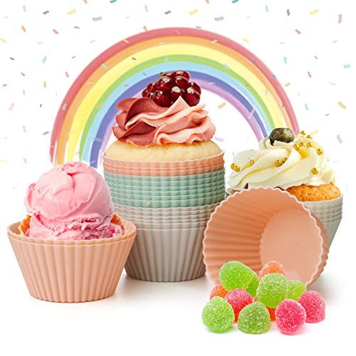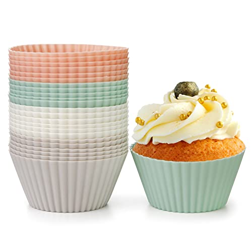 Spesh - حافظات مافن من السيليكون من سبيش، قوالب سيليكون قياسية للمافن قابلة لإعادة الاستخدام ومقاومة للالتصاق، (ألوان سادة فاتح) 24 قطعة