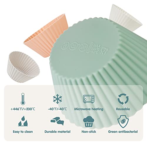 - مادة عالية الجودة: قوالب مافن سيليكون قابلة لإعادة الاستخدام مصنوعة من السيليكون الآمن غذائيًا، خالٍ من البيسفينول أ وغير سام وصديق للبيئة ومرن ومتين. أكواب خبز مقاومة للحرارة حتى 229 درجة مئوية