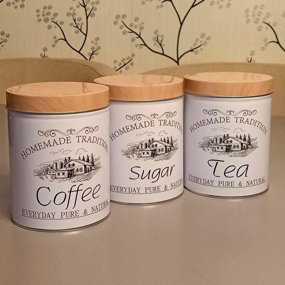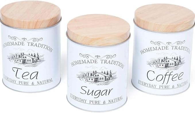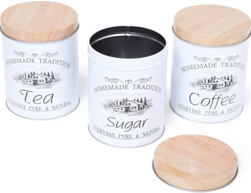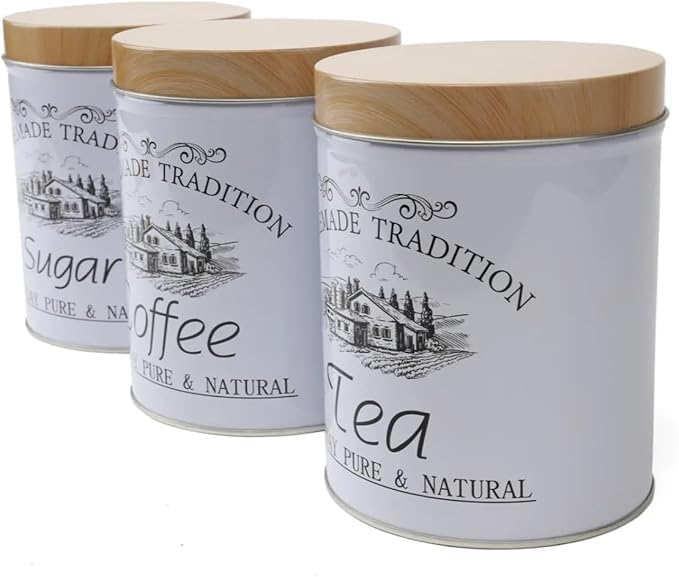 Generic - Spice Jar Set 3 Piece Round Metal White With Wooden Lid Airtight Containers Kitchen Storage For Tea Coffee Sugar Organizer Decorative Canisters Modern Design Rust Resistant