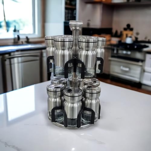 Generic - Spice set 12 pieces (glass and stainless) with a rotating stand