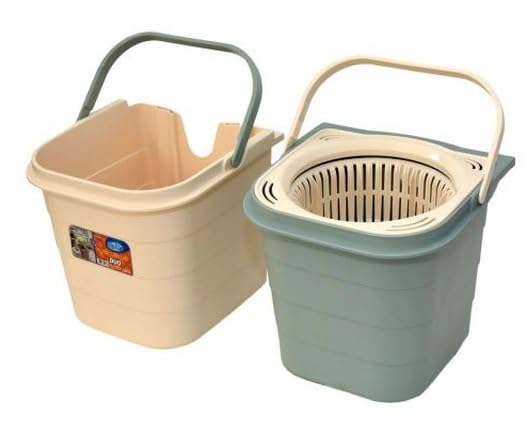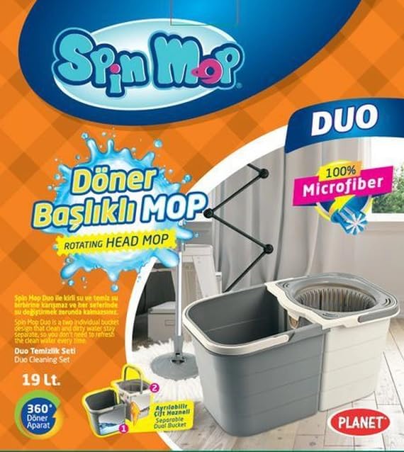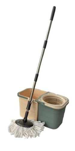 Generic - شرشوبة دوارة 2 في 1 مزودة بدلو مساحة تركية بنظام مزدوج لفصل المياه المتسخة النظيفة، رمادي وكريمي