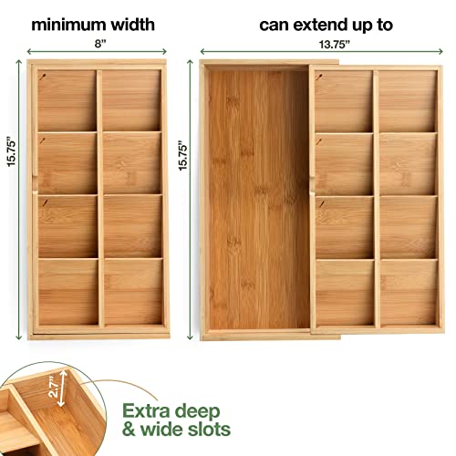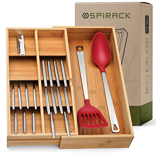 - THE PERFECT CUTLERY ORGANIZER YOU'VE BEEN LOOKING FOR! Spirack's wooden utensil holder is just what you need to get your kitchen drawer neat and organized, our silverware organizer for drawer measures 15.6" in length by 7.8" in width or 13.7" when fully extended, and 2.7" in height, making it the optimal size for your kitchen drawer
