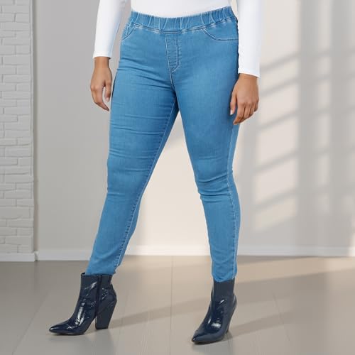 Splash - سبلاش بنطلون ضيق بمقاس كبير مع تفاصيل جيب وحزام خصر مطاطي ازرق - مقاس 30 6292374349067