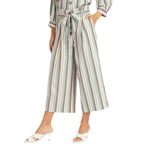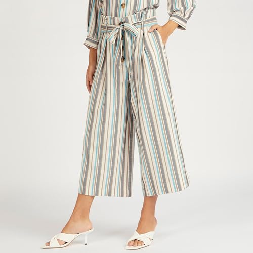 Splash - سبلاش سراويل قصيرة مخططة بحزام مع خصر ورقي وازرار زينة متعددة الالوان - مقاس 6 6292374171934