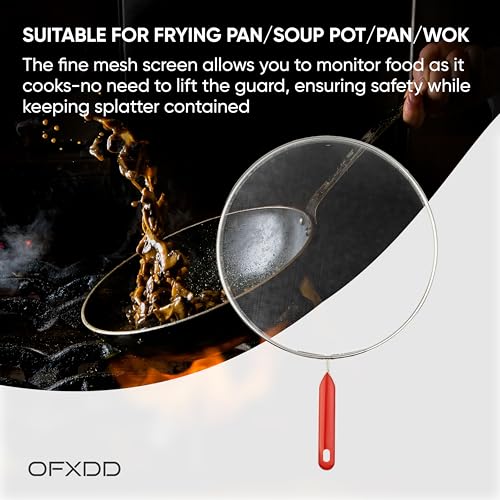 - Wok Splatter Screen plastic handle makes cooking safe: Securely joined handle is made of heat resistant plastic to protect your hands from painful burns.