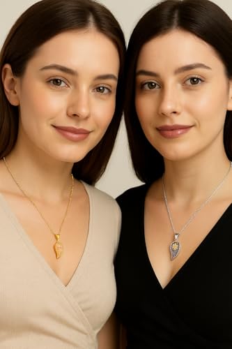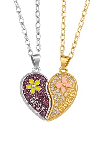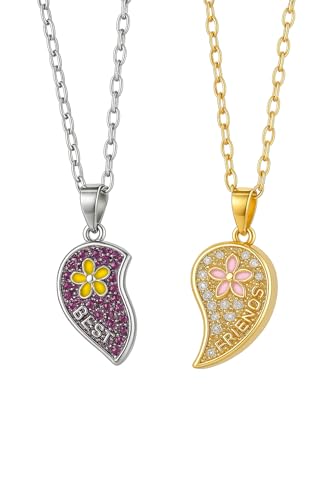 Generic - Split Heart Friendship Necklace, Gold and Silver Plated, Crystal Studded with Flower
