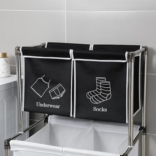 - Clothes laundry sorting:This laundry sorter has four detachable canvas bag labels, allowing differentiation of socks, underwear for improved sorting. It efficiently separates dark and light clothes, preventing uniform staining.