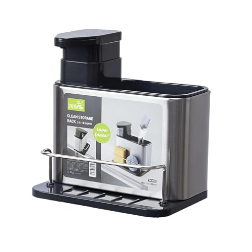 Generic - حامل إسفنجة - موزع سائل غسيل عملي مع حامل إسفنجة مدمج لتنظيف المطبخ بشكل انسيابي واستخدام فعال للمساحة (عبوة من قطعة واحدة)