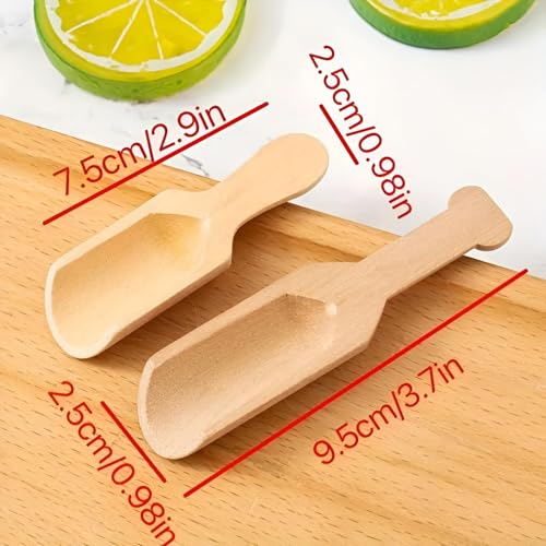 - These Mini Wooden Spoons come in a set of 6, making them an ideal choice for a variety of uses in your kitchen. With this quantity, you can efficiently store one spoon in each of your jars or canisters, ensuring convenience and organization while handling your ingredients. This abundance caters to all your preparation needs, from spices to sugar, providing versatility in cooking and serving.