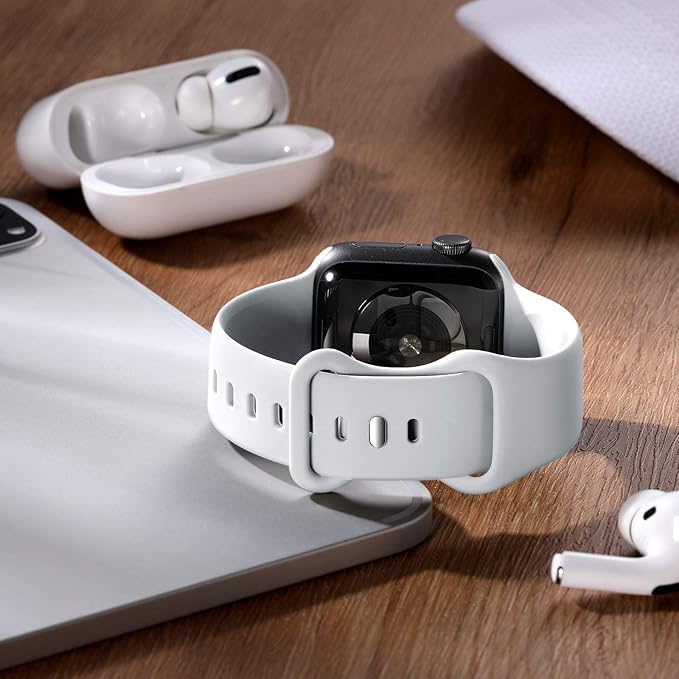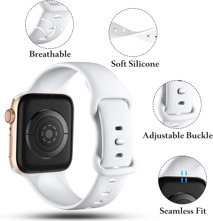 Generic - Sport Band Compatible with Apple Watch Bands 49 mm 45 mm 44 mm 44 mm 42 mm, Soft Silicone Wristband Strap with Classic Clasp for iWatch Series 10 9 Ultra SE 8 7 6 5 4 3 2 1 for Women Men, White Color
