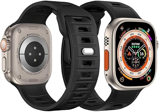 Generic - Sport Bands Compatible with Apple Watch Ultra 2/Ultra Band 49mm 45mm 44mm 42mm for Men, Soft Silicone Wristbands Waterproof Replacement for iWatch Series 9 8 7 6 5 4 3 2 1 SE SE2 (A BLACK)