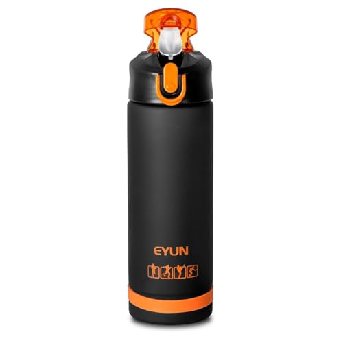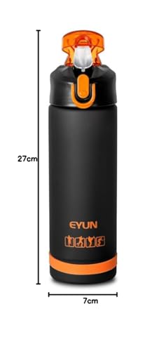 Generic - زجاجة مياه رياضية من البلاستيك خالية BPA بغطاء فليب فلوب مقاوم للتسرب مع قفل بالضغط للاستخدام في المدرسة والمكتب وصالة الالعاب الرياضية والرياضات الخارجية 750 مل برتقالي