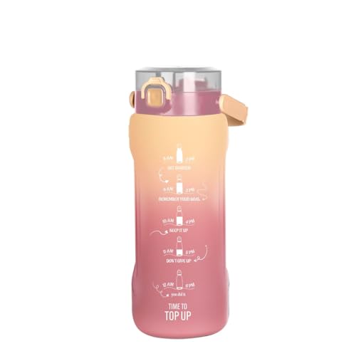 Generic - Sport Water Bottle2 L, Water Bottle with Straw and Handle, Leakproof Water Bottle with Time Markings Reminder Ensure Full Day Drink, Suitable for Fitness, (Pink)
