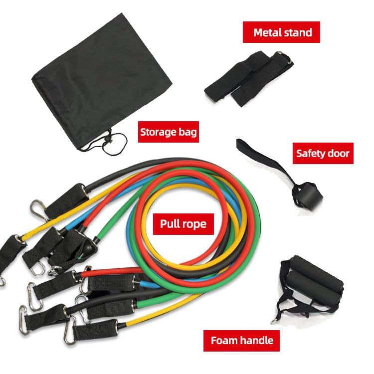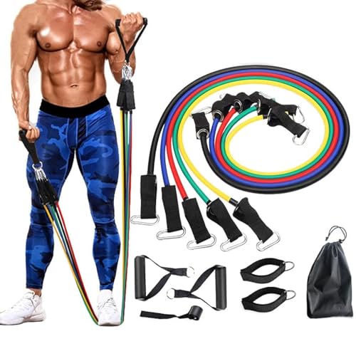 Al Arab for Import & Distribution - Ismail EL Fiky - SportHome Resistance Bands Set of 10, 5 Tubes Multi Resistance Bands for Fitness Workout with Handles, Door Anchor, Ankle Straps, Carry Bag for Men and Women