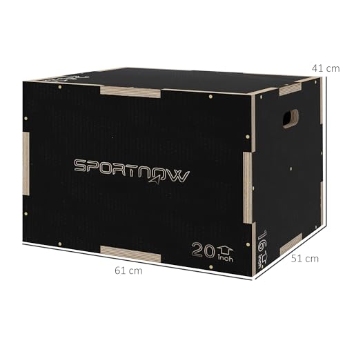 SPORTNOW - SPORTNOW 3-in-1 Wooden Plyo Box, Anti-Slip Plyometric Jump Platform, Step Up Exercise Box with Handle Openings for Home Gym, Workout Training, 41/51/61cm
