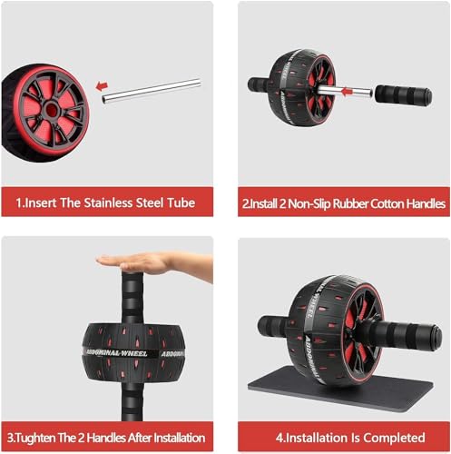 - 【SUPERIOR QUALITY】Trains one of the most effective parts of home exercise equipment. Made of strong and durable material to ensure that you stand up to even the most intense workout sessions. The belly wheel is made of sturdy stainless steel and non-skid rubber Cotton rubber handle, comfortable grip, smooth rubber wheel surface, cool operation, so you can enjoy exercising with a favorite experience.