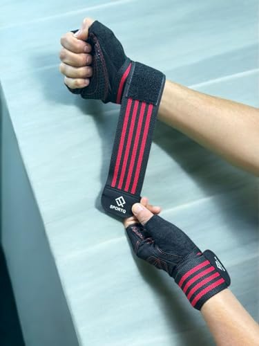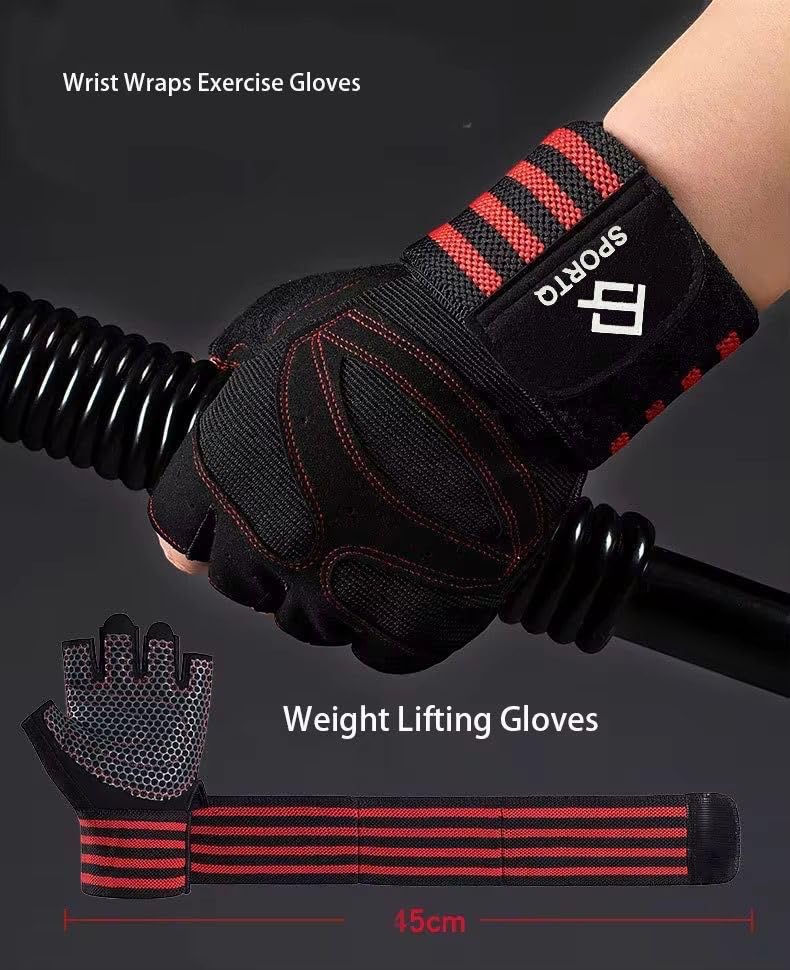 SportQ - SportQ® Workout Gloves Weight Lifting Gloves with Wrist Wraps for Gym Training Support, Fitness, Hanging & Pull Ups, Breathable, Full Palm Protection