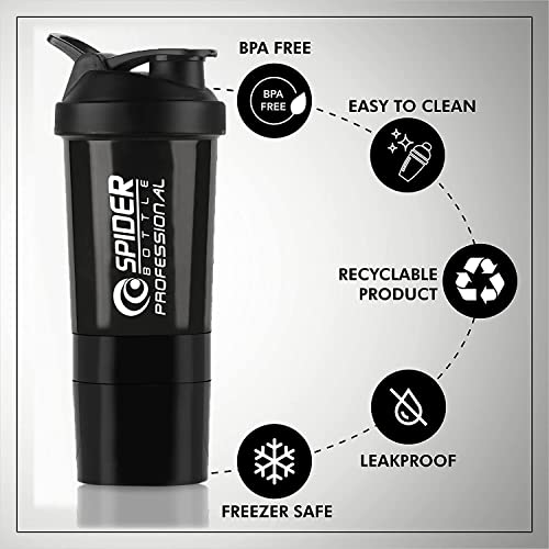 - 100 % Leak proof, storage container, pill container, water bottle + shaker for preparation and saving time.