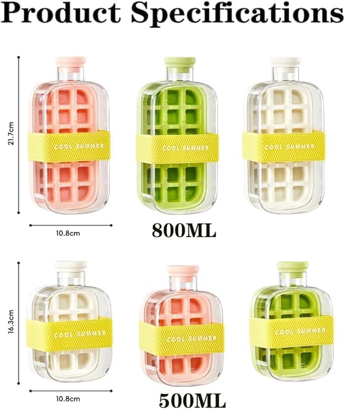AREXOL - Sports Ice Maker Bottle, 800ml Clear Healthy Acrylic Ice Maker with Leakproof Silicone Lid, Practical Design for Easy Ice Cubes and Fresh Juice at Home or Workout