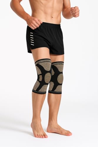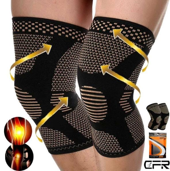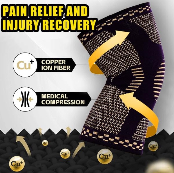 - UNIVERSAL SUPPORT: Stretch fabric with copper fiber provides multi-directional knee support while maintaining mobility