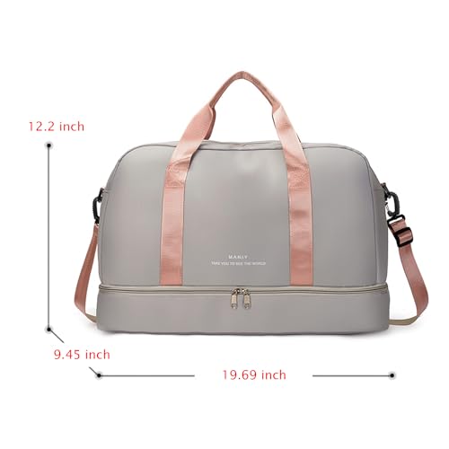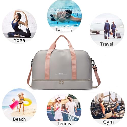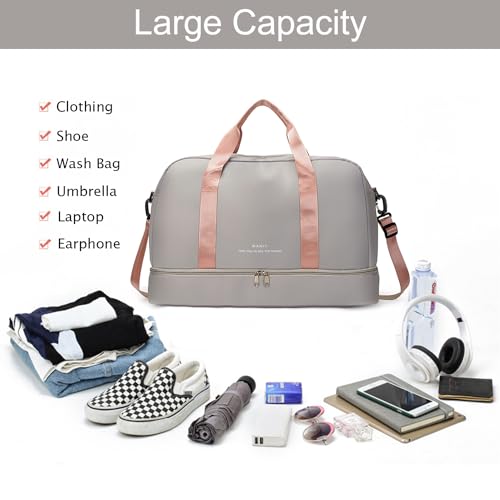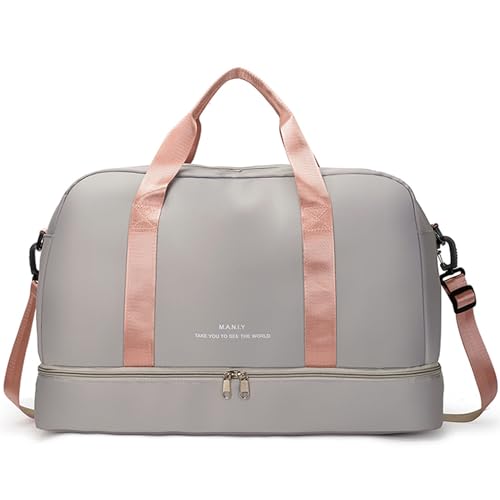 FOAN & MABLE - شنطة دفل رياضية للسفر للنساء، شنطة صالة الالعاب الرياضية خفيفة مع مساحة تخزين للاحذية، سعة كبيرة لعطلة نهاية الاسبوع مع جيب رطب للنساء والفتيات للسفر وصالة الالعاب الرياضية واليوغا والمدرسة (رمادي)
