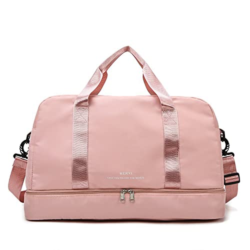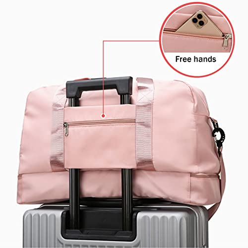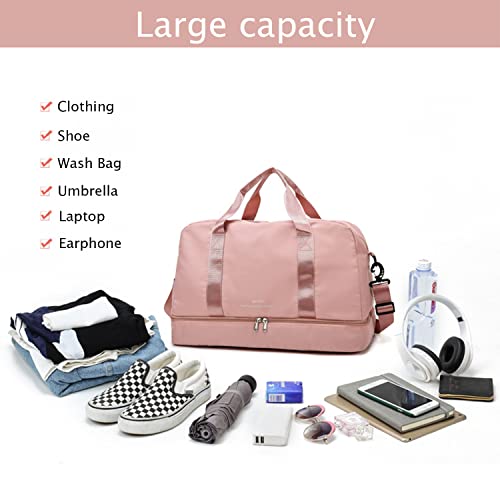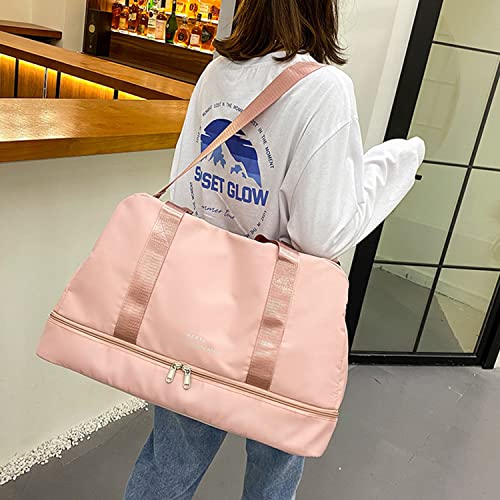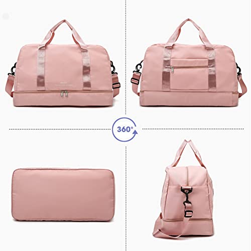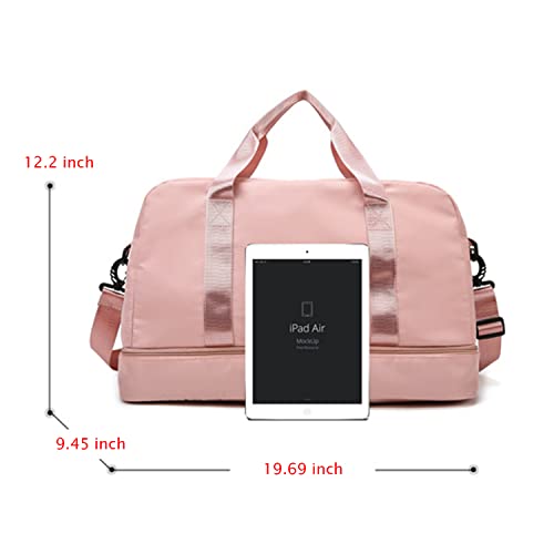 FOAN & MABLE - Sports Travel Duffel Bag with Shoe Compartment,Gym Bag for Women Large Capacity Weekender Overnight Bag for Women Girls Travel, Gym, Yoga, School Blue, Light pink