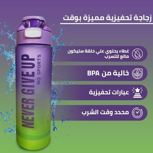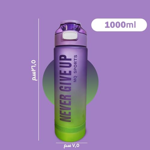 Generic - Sports Water Bottle 1L Bpa Free Leak Proof Motivational Water Bottle With Time Marker For Gym Travel Fitness Outdoor Sports School Office Home Yoga (Purple & Green)