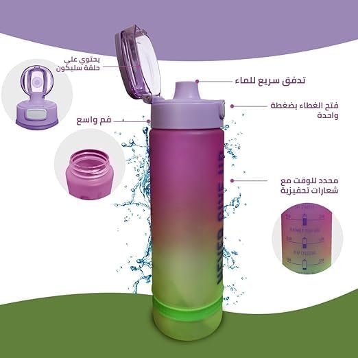 Generic - Sports Water Bottle, BPA-Free & 1L Leak-Proof, Motivational Design for Fitness, Travel, Gym, Yoga, Outdoor Activities, School & Office Use (Pink & Green)