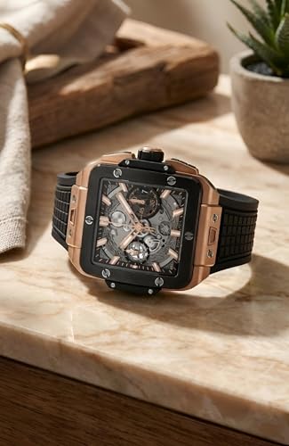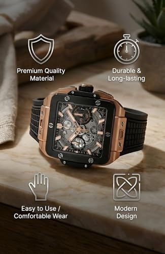 Generic - ساعة كرونوغراف رياضية كبيرة الحجم للرجال بمينا هيكل عظمي مربع، سوار مطاطي عالي التأثير بألوان متعددة نابضة بالحياة، نافذة تاريخ مدمجة، مثالية لأنماط الحياة النشطة.
