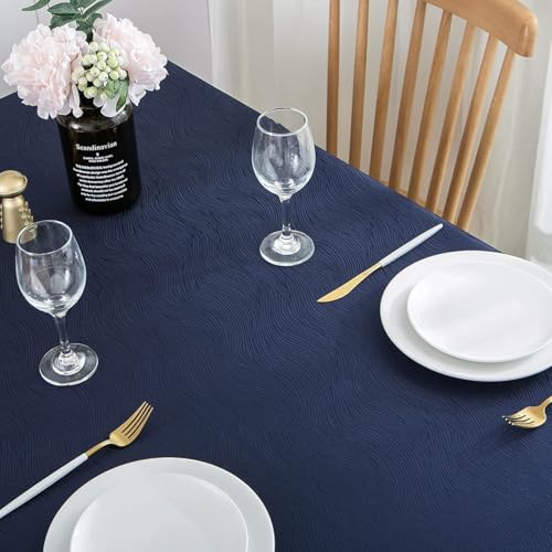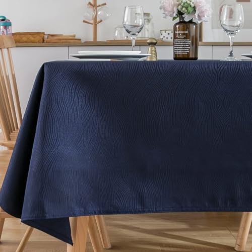 SPRICA - Jacquard Tablecloth 100% Polyester Water Resistance Solid Color Table Cover, Water Ripples Pattern Design, Machine Washable, Oblong 210x150cm, Navy Blue