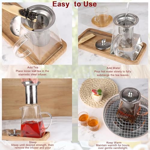 - TEAPOT FOR MEDITATORS: Elevate tea time to a meditative ritual, a moment for inner calm and clarity. Square Glass Tea Pot with Infuser nurtures the body and mind, inviting peace and reflection with each sip of tea. For those who seek harmony, this infuser tea pot becomes a pathway to serenity.