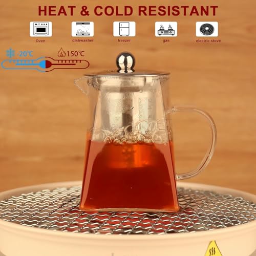 - HEAT & COLD RESISTANT: Crafted from durable borosilicate glass, this teapot withstands both heat and cold effortlessly. Heat-Resistant Borosilicate Glass Teapot with Strainer adapts to oven, dishwasher, freezer, gas, and electric stove use, offering safe versatility. Relish a warm or cool tea moment without worry of thermal stress.