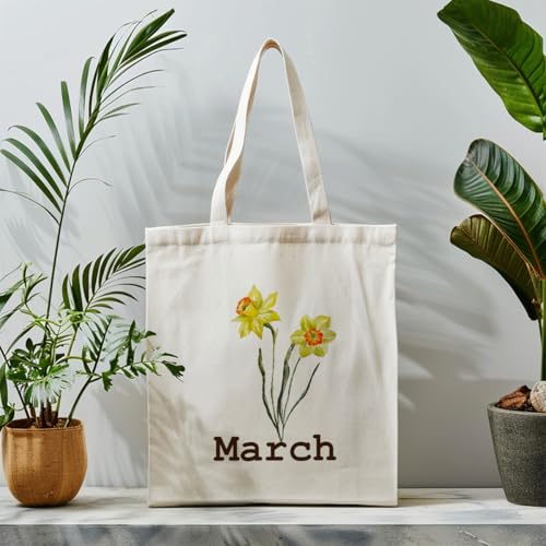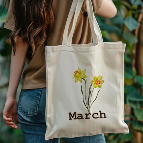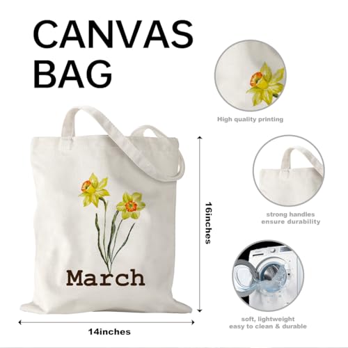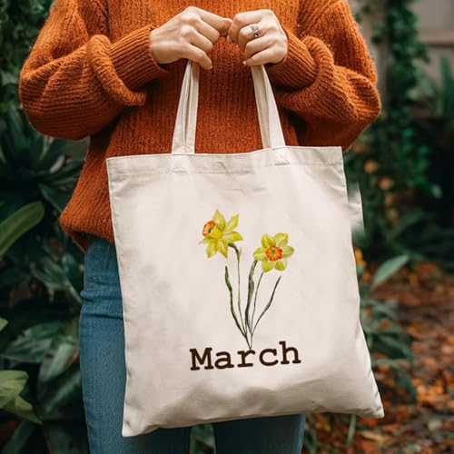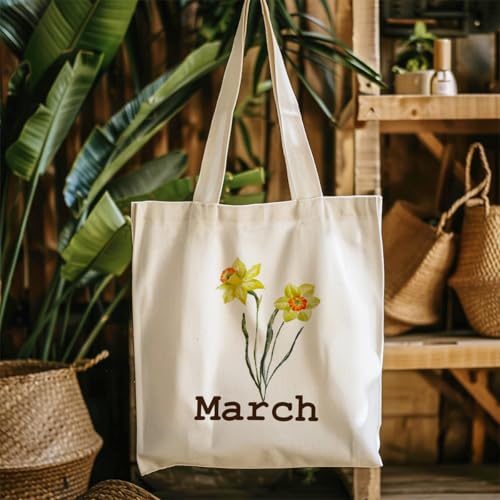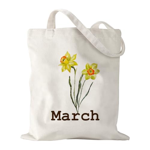 BQXS - Spring Tote Bag Spring Gifts for Women Birth Month Flower Tote Bag, Unique Bridal Party Gift Bridesmaid Wedding Tote Gift Best Friend Gift Daffodil Tote Bag Mother's Day Birthday Gifts, March, One