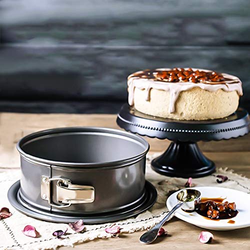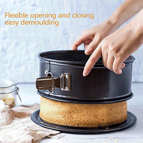 ShineDesign - صينية كيك دائرية غير لاصقة، صينية خبز كيك الجبن دائرية، صواني سبرينج فورم مانعة للتسرب مع قاعدة قابلة للازالة وقفل سريع الفك، لون اسود، 9 بوصة 22 سم من سبرينج فورم، صلب كربون، من سبرينج فورم