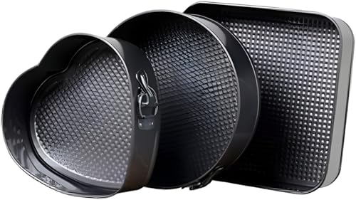 - تصميم ممتاز لتعدد الاستخدامات: تتضمن 3 صواني بأشكال قلب ودائرية ومربعة لتناسب أي حاجة للخبز، من الكعك إلى تشيز كيك.
