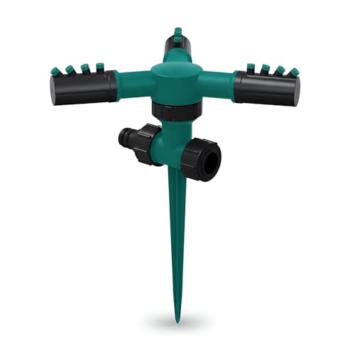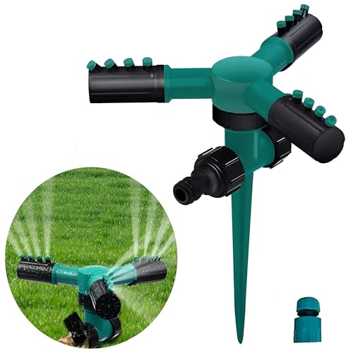 - This automatic rotating garden sprinkler offers a wide 360-degree coverage, adjustable angles (45° to 90°), and is designed with three leak-proof arms, ensuring efficient watering over large areas up to 33 feet in radius. Made from durable ABS material, it withstands harsh weather conditions including rain, wind, and snow for long-lasting performance.