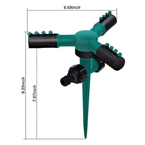 - Designed without requiring additional power tools, the sprinkler rotates 360 degrees solely through water pressure, offering automatic watering without electricity or batteries. Its adjustable nozzle allows for precise water targeting, making it suitable for various landscaping tasks including grass, garden beds, and roof cooling.